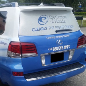 Our window perforation is custom designed to fit any model and gives your windows a one-way effect. You are able to see out of a perforated window, while clients looking in will see your design and company information.
